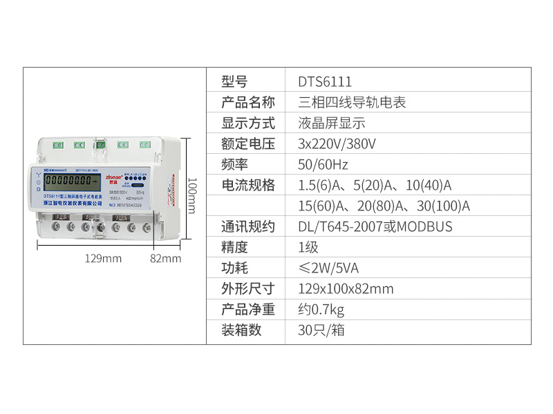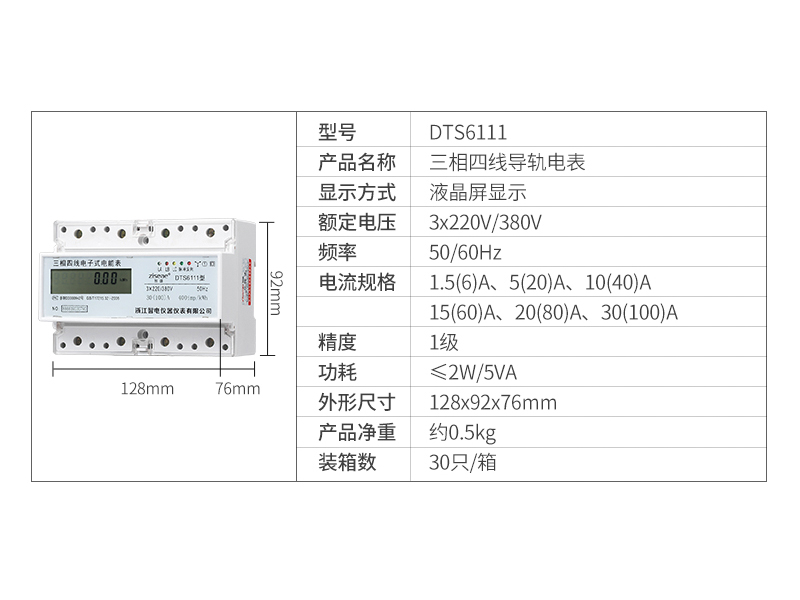六、DTS6111-7三相導軌式電能表的選型如下