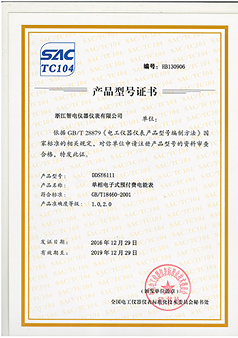 DDSY6111產品型號證書