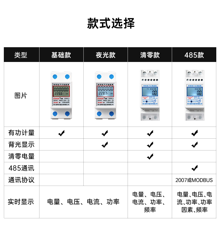 2、采用高品質計度器顯示累計電量(6+1位),顯示清晰鮮艷直讀性好。